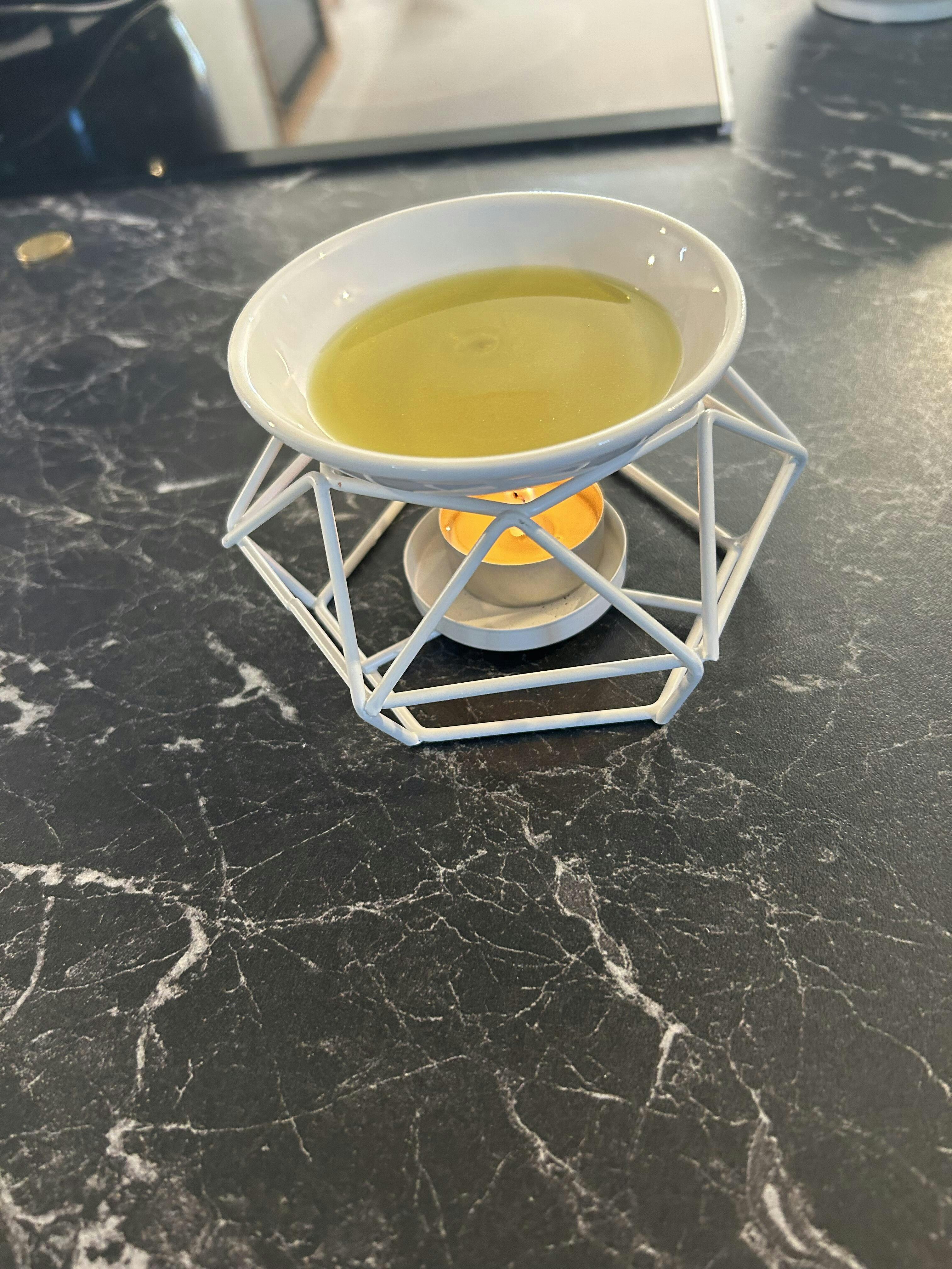 Het theelichtje verwarmt de was in een stenen schotel om aroma's en geuren te verspreiden. De basis is afneembaar van de kom voor moeiteloos schoonmaken.